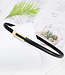 Dieser Gürtel ist schwarz und besteht aus einem Material in Lederoptik. Er ist 104 cm lang und hat einen goldenen Schnallenverschluss.