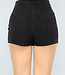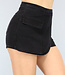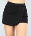 Dieser süße Skort ist aus dehnbarem Denim-Stoff gefertigt. Auf der Vorderseite hat der Skort eine verspielte, kreisförmige Überlappung. Sie können den Skort mit einem Knopf und einem einfachen Reißverschluss schließen. Die Überlappung kann mit einem Knopf auf der linken Seite der Taille zugeknöpft werden. Auf der Rückseite hat der Skort zwei Gesäßtaschen.