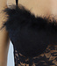 Dieser sexy Bodysuit ist aus einem Spitzenstoff gefertigt. Der Body hat verstellbare Spaghettiträger und ist mit vorgeformten Cups ausgestattet, so dass Sie keinen BH darunter tragen müssen. Der Bodysuit ist oben mit Federn besetzt, was für einen niedlichen Look sorgt. Sie können den Body mit einem Hakenverschluss öffnen und schließen, der aus zwei Haken besteht. Sie können die Haken in drei verschiedenen Positionen tragen.