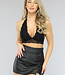 Dieser Bralette ist aus einem weichen Stoff mit viel Stretchanteil gefertigt. Der Bralette hat einen kurzen Schnitt und ein Spitzendesign. Das Oberteil hat einen Neckholder-Stil. Der Bralette hat keine vorgeformten Cups.