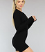 Dieser Body ist aus einem festen, dicken Stretch-Stoff gefertigt. Der Strampelanzug hat einen Reißverschluss an der Vorderseite, der bis zum Hals geschlossen werden kann. Die Ärmel sind lang und die Beine sind kurz.