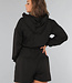 Dieser Playsuit ist aus einem dehnbaren Stoff gefertigt. Er hat lange Ärmel und eine zarte Kapuze. Der Halsausschnitt hat einen mittellangen Reißverschluss, den Sie offen oder geschlossen tragen können. In der Taille hat der Playsuit ein elastisches Band mit Schnürung, um ihn noch besser anzupassen. Der untere Teil des Playsuits ist mehrlagig und weit ausgestellt. Der Playsuit verfügt außerdem über Seitentaschen auf beiden Seiten.