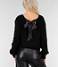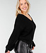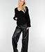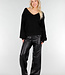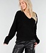 Dieser schwarze Strickpullover hat einen tiefen V-Ausschnitt und eine weiche, locker fallende Passform. Der Pullover ist aus einem fein gestrickten Stoff mit einer dezenten Rippstruktur und langen Ärmeln mit leicht elastischen Bündchen gefertigt. Der bequeme Stoff fühlt sich weich auf der Haut an und sorgt für einen eleganten, aber entspannten Look. Ideal zu Jeans oder Rock für einen lässig-schicken Look.
