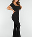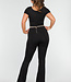 Dieser schwarze Jumpsuit ist aus einem Stretch-Stoff gefertigt, hat ausgestellte Beine und einen eleganten quadratischen Ausschnitt mit kurzen Ärmeln. Das Design ist sowohl schick als auch bequem und eignet sich perfekt für einen Tagesausflug oder eine lässige Ausgehparty. Der weiche Stoff bietet eine hervorragende Passform, während die Schlaghosenbeine dem Look einen Retro-Look verleihen. Es ist eine vielseitige Wahl, die sowohl mit Absatzschuhen als auch mit Turnschuhen getragen werden kann, was es zu einem Must-Have für Ihre Sommeroutfits macht.