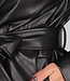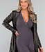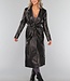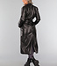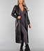 Dieser Trenchcoat hat eine Lederoptik und fällt lang. Auf der Vorderseite befinden sich zwei Seitentaschen. Der Knopfverschluss verleiht dem Mantel eine besondere Note und macht das An- und Ausziehen einfach. Die Jacke hat einen Gürtel um die Taille und einen Kragen.
