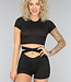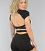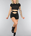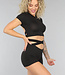 Dieser Zweiteiler ist aus einem Stretch-Stoff gefertigt. Das Set besteht aus einem Crop Top und Shorts. Das Crop-Top hat kurze Ärmel und ein schönes gekreuztes Detail auf dem Rücken. Die Shorts haben ebenfalls gekreuzte Träger. Dieses Set ist perfekt für ein Festival!