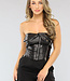 Dieses Top in Lederoptik hat einen Bandeau-Stil. Das Oberteil ist nicht gepolstert, aber da das Oberteil aus einem robusten Stoff in Lederoptik gefertigt ist, ist das Tragen eines BHs unnötig. Auf der Vorderseite befindet sich ein großer Reißverschluss, mit dem das Top geschlossen werden kann.