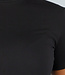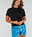 Dieses schwarze Oberteil ist ein Basic-T-Shirt mit kurzen Ärmeln und einer lockeren Passform. Der Stoff ist dehnbar, so dass er sich mit Ihnen bewegen kann. Das Oberteil hat einen runden Halsausschnitt und einen geraden Saum. Die Ärmel fallen auf halber Höhe des Oberarms herab. Dank der Kombination aus Stretchanteil und lockerer Passform eignet sich das Oberteil für den Alltag oder als Unterlage zu anderen Kleidungsstücken.