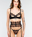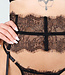 Verwöhnen Sie sich mit diesem wunderschönen schwarzen Dessous-Set, bestehend aus einem Bralette mit Bügeln und Ausschnitt, einem hochgeschnittenen Korsett, das die Taille betont und mit einem Strapsgürtel versehen ist, und einem passenden String. Die zarte Spitze und die verstellbaren Träger sorgen für einen zusätzlichen Hauch von Sinnlichkeit.