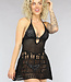 Dieses Kleid ist gehäkelt und daher schön als ein Cover-up. Das Kleid hat ein Halfter Modell und hat eine Schleife Detail, das Sie selbst am Hals binden können. Auf der Rückseite, können Sie die Schnüre selbst ziehen, so dass sie schön passen. Das Kleid ist komplett durchsichtig, weil es gehäkelt ist.