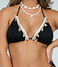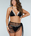 Dieses 2-teilige Bikini-Set ist aus einem schwarzen, strukturierten Stoff gefertigt. Das Oberteil hat ein Dreiecksdesign und kann sowohl am Rücken als auch im Nacken mit Trägern nach Belieben gebunden werden. Das Oberteil ist mit herausnehmbaren Polstern ausgestattet. Das Unterteil hat eine freche Form und ist an beiden Seiten mit einer Schleife verziert. Das Set hat süße Muscheldetails sowohl am Oberteil als auch am Unterteil. Zu diesem Set gehört auch ein passender Wickelrock, so dass Sie sofort einen passenden Überwurf haben!
