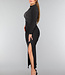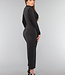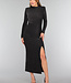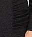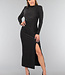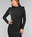 Dieses Kleid ist aus einem Stretch-Stoff mit Glitzeranteil gefertigt. Das Kleid hat einen hohen Ausschnitt und lange Ärmel. Das Oberteil des Kleides hat ein plissiertes Design und Schulterpolster. Der Rock des Kleides hat eine enge Passform und einen Schlitz.