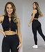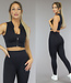 Schwarzes Grobstrick-Sporttop mit Reißverschluss