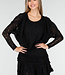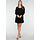 Dieses kurze Kleid ist aus schwarzer Spitze mit einer dehnbaren Struktur gefertigt, die für eine flexible Passform sorgt. Das Modell hat einen Rundhalsausschnitt und lange Ärmel aus transparenter Spitze. Die Taille und der Hüftbereich sind leicht plissiert und schmiegen sich dank des Stretchmaterials schön an. Der Rock reicht bis über das Knie und ist mit einem asymmetrischen Plissee-Saum versehen.