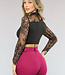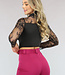 Schwarzes Korsett-Top mit Spitzenärmeln