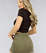 Schwarzes kurzärmeliges Top mit Plissee-Details