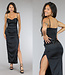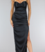 Dieses wunderschöne Galakleid aus Satin hat dezente Träger, die breit über die Brust fallen und verstellbar sind. Das Bügel-Oberteil ist zudem weich gepolstert und sieht dadurch besonders schick aus. Der hochgeschnittene Schlitz und die gesmokten Details machen dieses Kleid zum ultimativen Blickfang. Sie werden sich sofort wie eine Berühmtheit fühlen. Außerdem lässt sich das Kleid am Rücken mit einem dünnen, unsichtbaren Reißverschluss schließen.