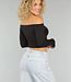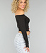 Dieses superfeine Basic-Top ist aus einem Stretch-Stoff gefertigt. Das Top hat lange Ärmel mit Daumenlöchern und einen schulterfreien Schnitt. Das Top fällt tailliert.