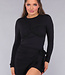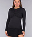 Dieses Oberteil ist aus einem feinen, weichen Stretch-Stoff gefertigt. Es hat einen hohen Rundhalsausschnitt und lange Ärmel. Vorne hat es ein hübsches asymmetrisches Plissee-Drehmuster. Das Oberteil ist unifarben und lässt sich daher gut kombinieren.