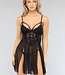Dieses Babydoll ist aus einem weichen, durchsichtigen Netzstoff gefertigt, der mit hübschen Spitzendetails versehen ist. Es hat eine Dreiecksform und verstellbare Spaghetti-Träger. Am unteren Ende ist das Kleid in schöne Falten gelegt und läuft aus.