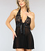 Schwarzes Mesh Halter Slipdress mit Spitze