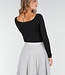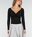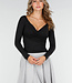 Schwarzes Top mit Overslag und Plissee-Detail aus Stretch