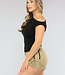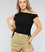Dieses Stretch-Top ist aus einem sehr dehnbaren und weichen Stoff gefertigt. Es hat kurze Ärmel, die knapp über die Schultern fallen. Der Ausschnitt des Tops ist drapiert und an den Seiten befinden sich süße Schleifendetails.