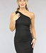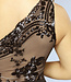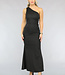 Dieses schöne Gala-Kleid ist aus einem dicken Stretch-Stoff gefertigt. Das Kleid hat ein One-Shoulder-Design mit einem verdeckten Reißverschluss an der Seite. Die Rückseite des Kleides ist reichlich mit Pailletten und Pailletten verziert.