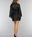 Dieses wunderschöne Kleid ist ein echter Hingucker, denn es ist mit Pailletten besetzt. Das Kleid hat lange, ausgestellte Ärmel und einen hohen Ausschnitt. Das Kleid hat einen verdeckten Reißverschluss mit zwei Knöpfen am Rücken und ist mit einem Taillenband versehen. Außerdem gehört zu diesem Kleid ein Unterkleid, so dass Sie die Pailletten nicht spüren werden.