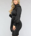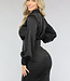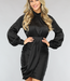 Dieses Kleid hat einen Satin-Look, der ihm ein luxuriöses Gefühl verleiht. Es hat lange Puffärmel mit einer Borte am Ende mit drei kleinen Knöpfen. Es hat einen hohen Rundhalsausschnitt und auf der Vorderseite gibt es allerlei hübsche Falten. Das Kleid lässt sich schließen und fällt bis knapp über das Knie. Es hat einen verdeckten Reißverschluss auf der Rückseite und einen doppelten Knopfverschluss im Nacken. Es enthält keinen Stretchanteil!