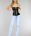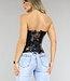 Dieses PVC-Korsett wird mit einem Reißverschluss auf der Vorderseite geschlossen. Außerdem hat es vorne 5 verstellbare Riemen. Auf der Rückseite befindet sich ein Schnürverschluss in Satinoptik. Es hat 10 Spiralstäbchen.