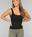 Dieses Tank-Top ist das perfekte Basic und ärmellos. Das Oberteil ist aus dehnbarem Rippstoff gefertigt und verfügt über herausnehmbare Pads.
