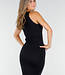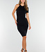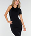 Dieses Kleid ist aus einem weichen Rippenstrick-Stretch-Stoff gefertigt. Das Kleid hat einen Rundhalsausschnitt und einen einzelnen Ärmel, was ihm einen einzigartigen Look verleiht. Das Kleid hat einen Midi-Schnitt und fällt bis zum Knie.
