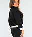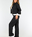 Zweiteiliges Set Schwarz mit Taillenband und Jacke mit Knopfverschluss
