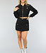 Dieser Zweiteiler besteht aus einem taillierten Bomber und einem kurzen Skort. Der Bomber hat süße Plissee-Details an den Ärmeln und die Ärmelenden haben Verbindungsbündchen. Auf der Brust hat der Bomber zwei Brusttaschen. Er hat einen runden Kragen und einen Reißverschluss. Der Skort hat einen Einsatz am Boden und zwei Cargotaschen. Der elastische Bund ermöglicht ein einfaches An- und Ausziehen.