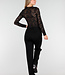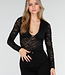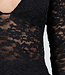 Dieses schwarze Crop-Top ist aus transparentem Spitzenstoff mit Blumenmuster gefertigt. Das Modell hat lange Ärmel und einen tiefen V-Ausschnitt mit integrierter Brustnaht für zusätzliche Form. Das Top liegt eng am Körper an und hat eine kurze Passform. Durch die elastische Spitze bietet das Top Stretch für mehr Tragekomfort.