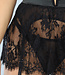 Alle Teile sind aus Spitze gefertigt und schimmern daher durch. Der BH hat einen hohen, edlen Ausschnitt und Bügel. Am Rücken befindet sich ein Hakenverschluss, der aus zwei Haken besteht, die in drei Positionen eingestellt werden können. Die Schulterträger sind fest, aber verstellbar. Der Strapsgürtel hat verstellbare/nicht abnehmbare Strapse und einen verdeckten Reißverschluss an der Seite. Dieser Strapsgürtel hat ein Rockdesign. Wird mit passendem String geliefert.