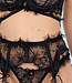Schwarzes Spitzen-Dessous-Set mit Strumpfhaltern und Schleifen