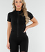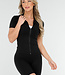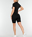 Dieses schwarze Sportset besteht aus einer kurzen Jacke mit Reißverschluss und einer passenden, hoch taillierten Shorts. Die Shorts haben einen korrigierenden, verstärkten Bund, der für einen festen Sitz sorgt. Das geschmeidige Stretchmaterial bietet optimale Bewegungsfreiheit beim Sport. Die abgesteppten Linien und Details verleihen ihr einen coolen Look und betonen Ihre Figur!