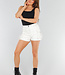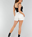 Weiße Cargo-Shorts in Lederoptik mit hoher Taille