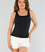 Schwarzes, schmal geschnittenes Top mit quadratischem Ausschnitt und breiten Trägern