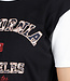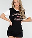 Dieses übergroße T-Shirt-Kleid in Schwarz mit weißen Ärmeln hat einen sportlichen Look. Auf der Vorderseite befindet sich ein großer "California Los Angeles"-Print, wobei die Buchstaben mit einem auffälligen Leopardenprint gefüllt sind. Das Kleid hat eine bequeme gerade Passform und ist ideal für lässige Momente oder Streetwear-Styling. Es ist aus einem weichen Stoff gefertigt, der sich angenehm auf der Haut anfühlt.