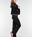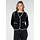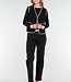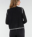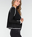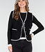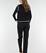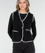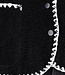 Diese schwarze Weste hat eine weiche Teddy-Struktur und einen geraden Schnitt, der bis zur Hüfte reicht. Die Kanten sind mit kontrastierenden weißen Ziernähten verziert. Die Weste wird vorne mit einer Knopfleiste geschlossen und hat zwei aufgesetzte Taschen auf der Vorderseite.