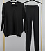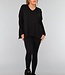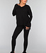 Dieser wunderbar bequeme Zweiteiler ist aus einem weichen, dehnbaren Rippenstoff gefertigt. Das Set fällt locker und besteht aus einem Pullover und einer Hose. Der Pullover hat lange Ärmel und ist mit einem V-Ausschnitt versehen. Das Oberteil hat an beiden Seiten einen Schlitz. Die Hose ist lang und hat einen Gummizug am oberen Ende.