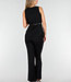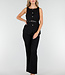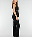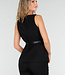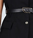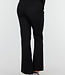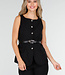 Dieses schwarze zweiteilige Set besteht aus einem ärmellosen Oberteil und einer passenden Hose. Das Oberteil hat goldfarbene Knöpfe auf der Vorderseite, einen Rundhalsausschnitt und einen Taillengürtel mit Schnalle für eine figurbetonte Passform. Die Hose hat ausgestellte Hosenbeine mit einer dezenten Bügelfalte und einem glatten Finish. Der feste Stoff sorgt für eine elegante Form, die schön in Form bleibt.