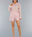 Hellrosa Zweiteiliges Set mit durchsichtiger Bluse und elastischer Short