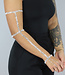 Dieser hübsche Armschmuck ist eine zusätzliche Ergänzung zu Ihrem Outfit. Wunderschön zu tragen, zum Beispiel zu einem Satinkleid. Der Schmuck ist mit vielen Strasssteinen besetzt und kann um den ganzen Arm getragen werden. Der Schmuck endet an der Hand und enthält drei Karabinerverschlüsse.