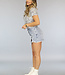 Dieses Oberteil hat kurze Ärmel und einen taillierten Schnitt. Der Ausschnitt des Tops ist hoch und kann am Hals mit zwei Knöpfen verschlossen werden. Das Top ist mit hunderten von Pailletten besetzt und hat dazu noch einen Einsatz oben.