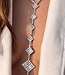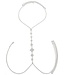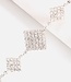 Diese Körperkette ist perfekt, wenn Sie ein tiefes Dekolleté haben und einen besonderen Anlass haben. Die Kette besteht aus Quadraten mit Glitzersteinen. Die Quadrate befinden sich in der Mitte der Brust und laufen zum Hals und unter der Brust hinunter. Die Bodychain ist mit zwei Karabinerverschlüssen versehen.