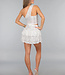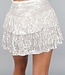 Dieser Artikel sieht aus wie ein Rock, aber er enthält eine Hose. Es ist aus einem Pailletten-Stretch-Stoff gefertigt, sodass die Hose gut sitzt. Es verfügt über mehrere plissierte Schichten, die schön übereinander fallen. Der Hosenrock hat eine hohe Taille und ist mit einem Reißverschluss auf der rechten Seite versehen.
